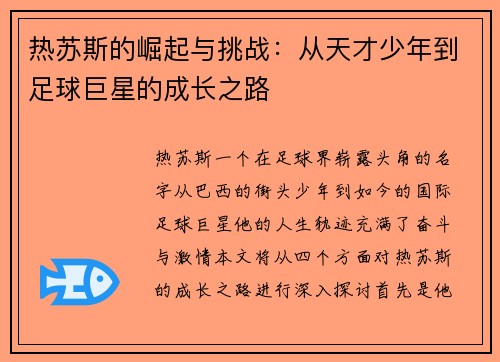 马尔基尼奥斯,这个名字在足球界如雷贯耳。他的职业生涯从一个天赋少年起步,逐渐成长为足坛巨星,成为全球球迷心目中的偶像。本文将对马尔基尼奥斯的传奇之路进行详细阐述,从他的青少年时期、职业生涯初期、在巴黎圣日耳曼的辉煌成就以及他对球队和国家队的重要影响四个方面进行深入分析。同时,也将探讨他在场上的领导力...